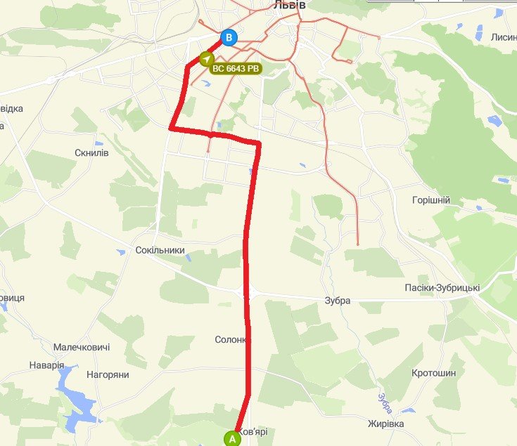 Відстань 15,3 км, час їзди – біля 35 хв.