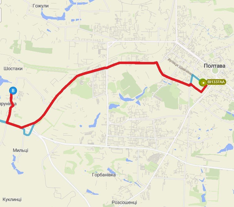 Маршрут проходить через наступні зупинки: